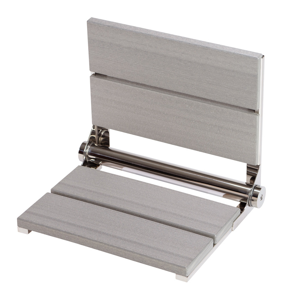 🛡️ Bathcessories™ 18" Natural Wood Grain Composite Fold Down Shower Seat Collection